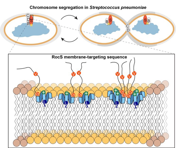 Lors de la division cellulaire, les bactéries doivent répartir fidèlement leur ADN entre les deux cellules filles. Dans un article publié dans Advanced Science, des scientifiques montrent que, chez la bactérie Streptococcus pneumoniae, cette étape dépend d’une interaction étroite entre la protéine RocS et la membrane cellulaire. Leur étude révèle qu’un court motif conservé de RocS agit comme une ancre membranaire capable d’organiser localement les lipides et de guider la séparation correcte des chromosomes